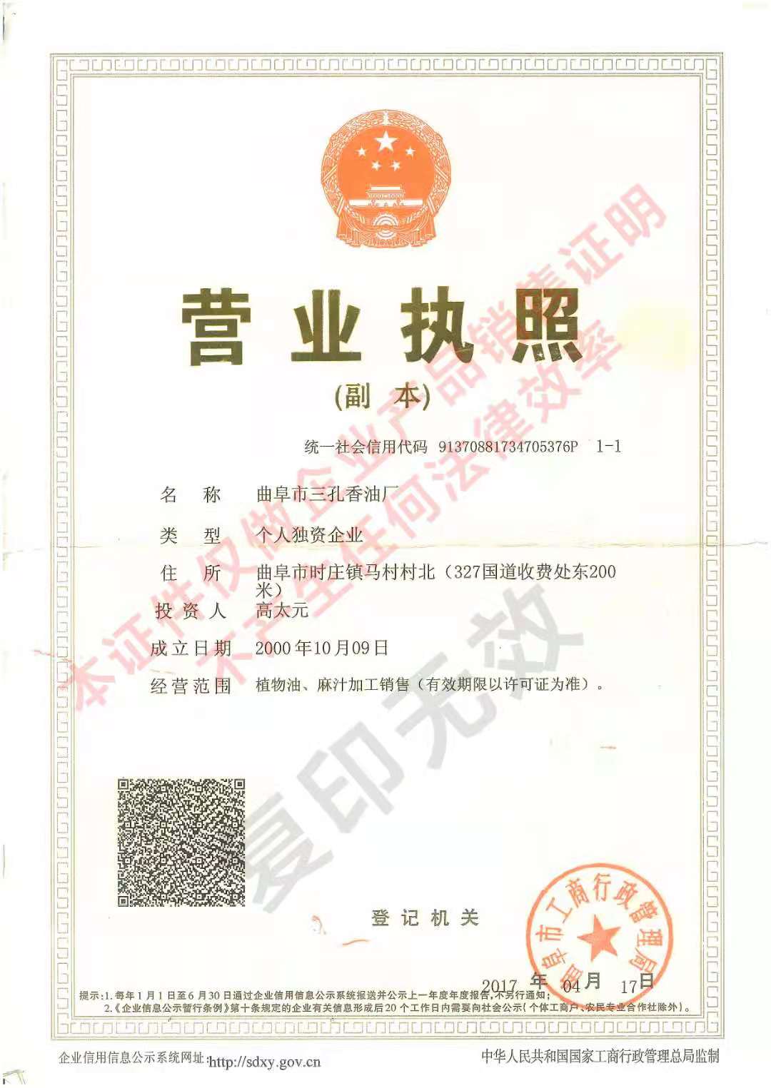 公司主要产品有:纯芝麻香油、调和香油、大豆油系列调味产品,确保出厂产品“安心、健康”。